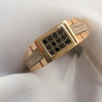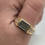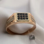 Золота печатка 585 проби з фіанітами чорного кольору.