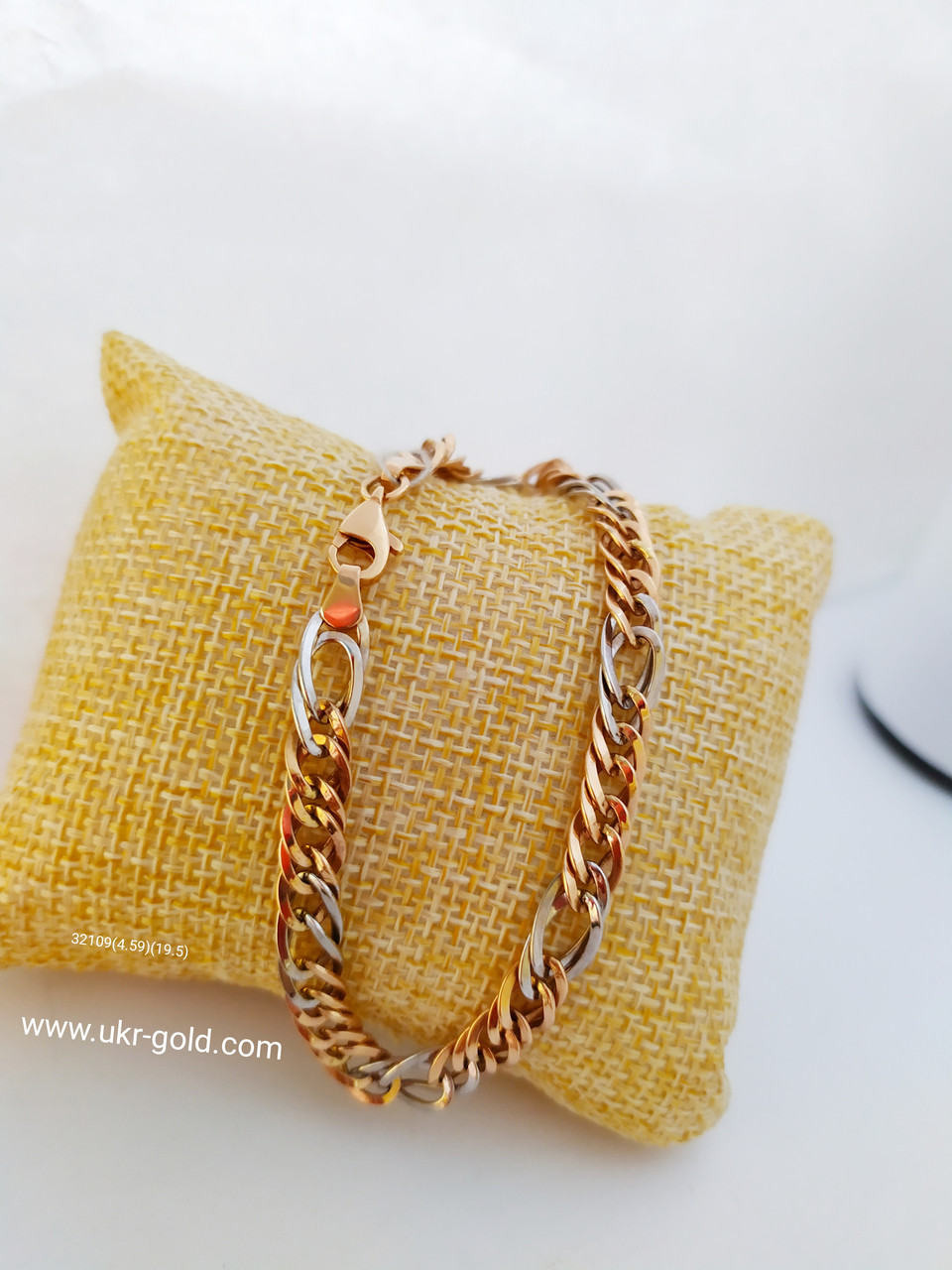 Золотий браслет З червоного і білого золота 585 проби Вага 4.59 Розмір 19.5 Плетіння ромб з білою вставкою
